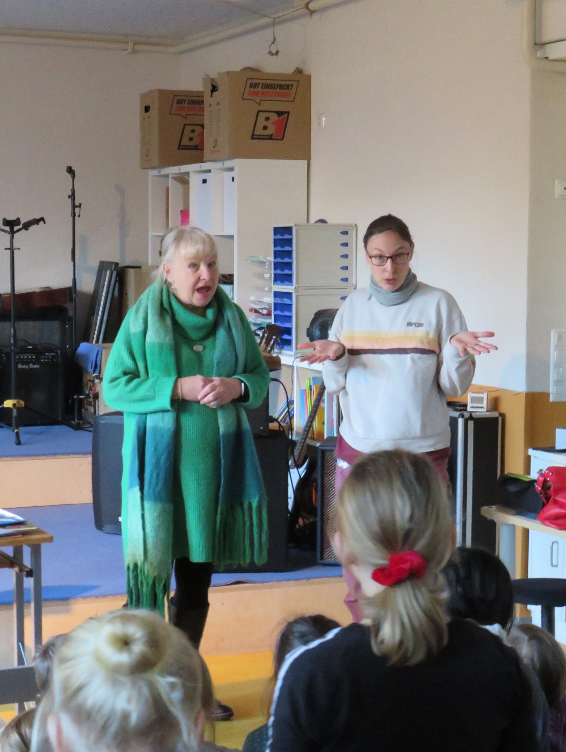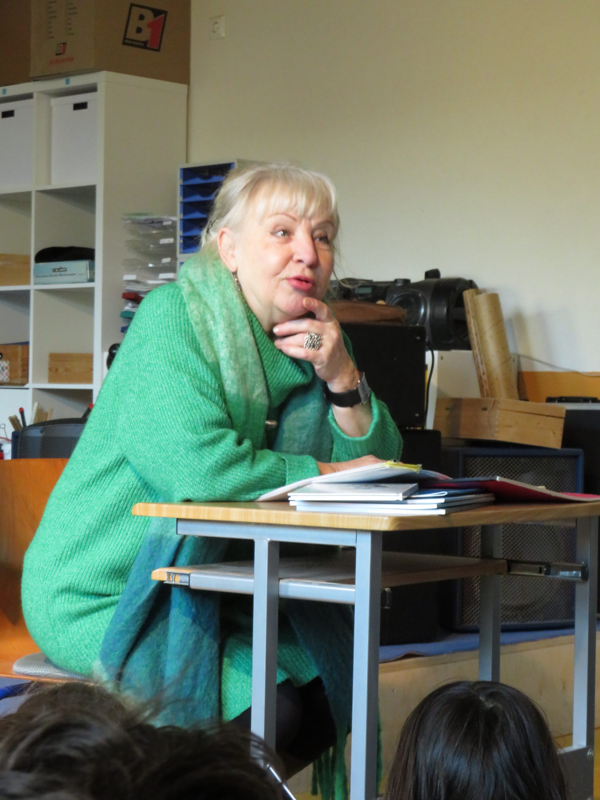 Zum Abschluss der Lesung spielte sie Sprachspiele mit den Schülern und Schülerinnen. Dabei kamen lustige Reime und besondere Sätze heraus: